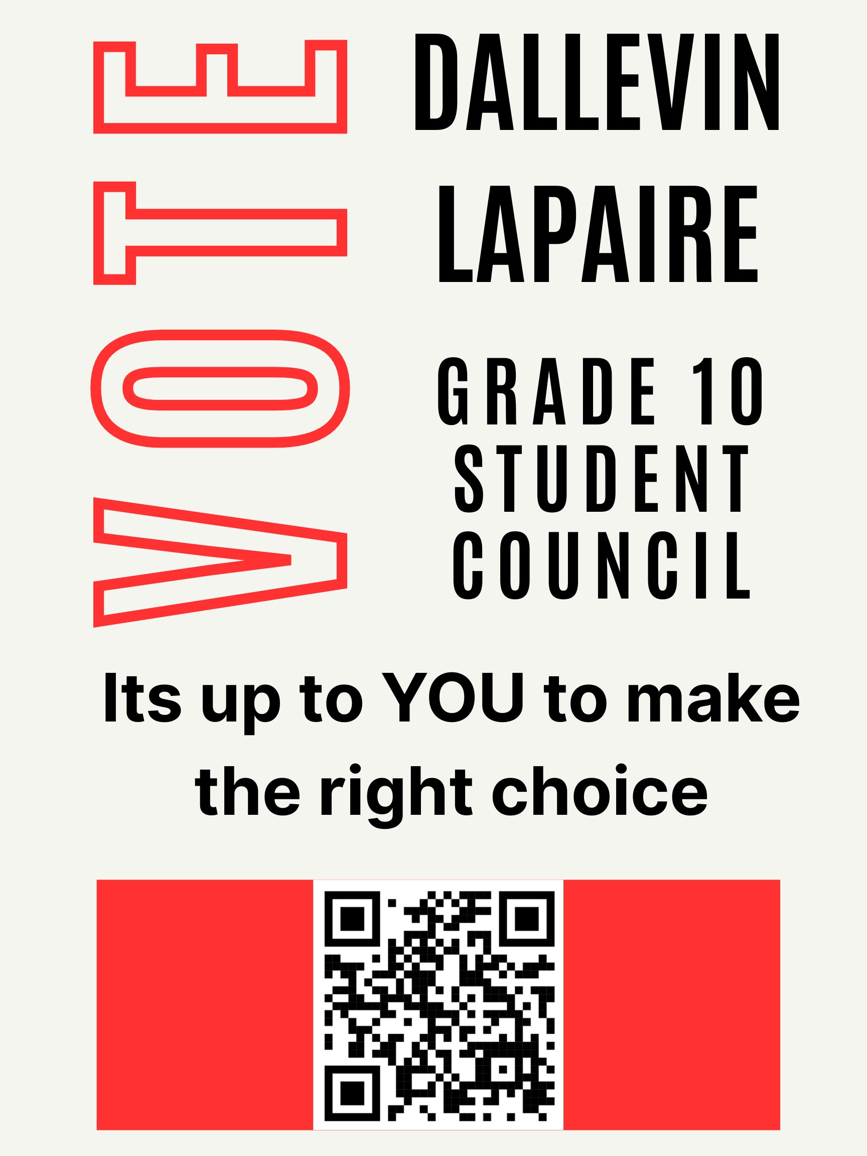 Dallevin Lapaire- Dallevin Lapaire is a grade ten high school student at MBSS Cranbrook. Dallevin is a hard-working, persistent student who wants his peers to receive the optimum high school experience. Dallevin has proven to be a leader in his endeavors and always wants the best for his friends and fellow students. He is running for student council to make the school a better, safer, and more accessible place. If elected, Dallevin plans to repair failing bathrooms, make the weight room accessible to students before and after school hours, and fight against the rise of vaping in MBSS. “High school is an important part of a person's life,” says Dallevin. He wants to make sure that Mount Baker will be remembered as a positive experience for graduates. Dallevin Lapaire Poster